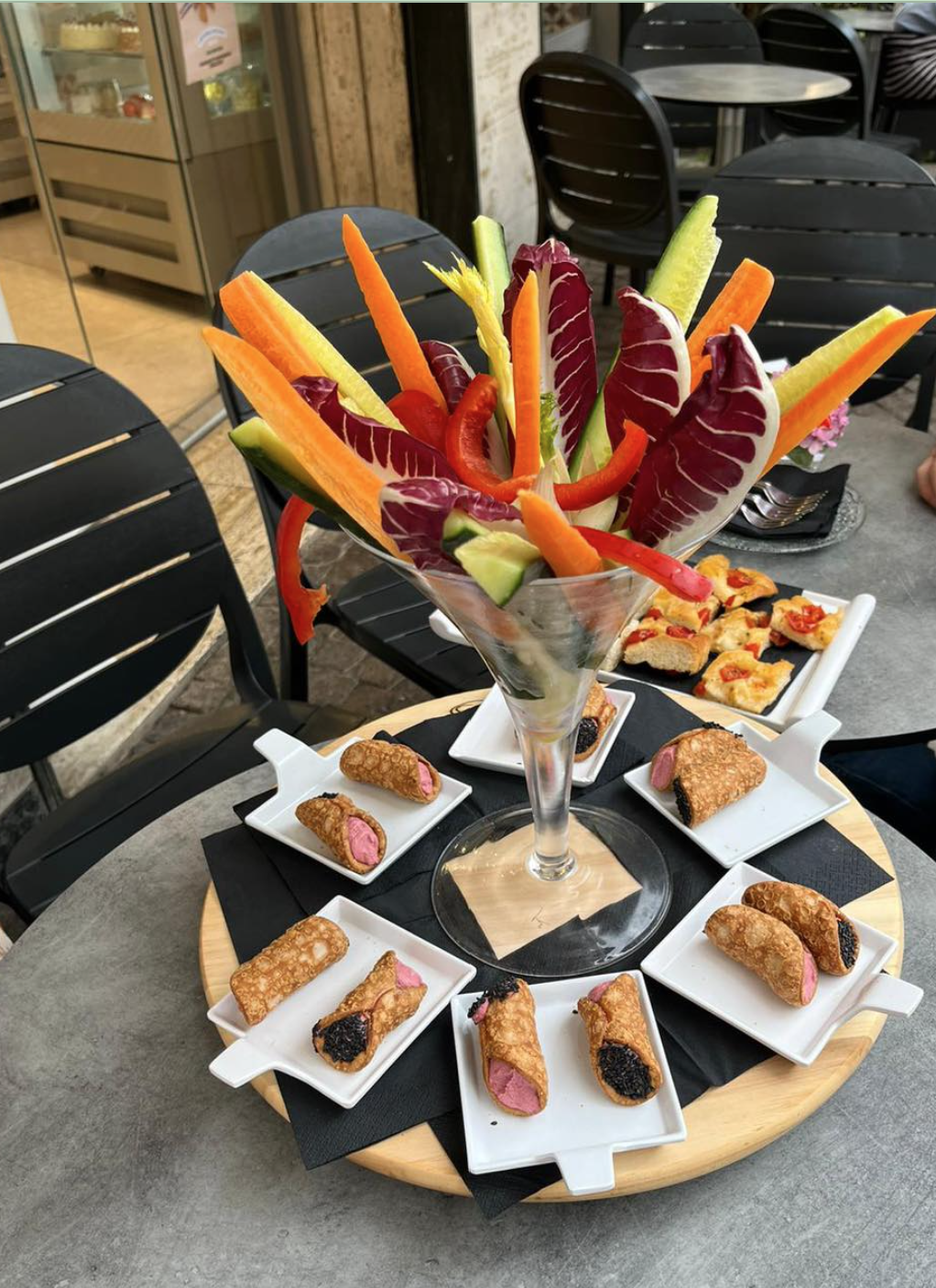 Scopri un mondo di sapori con la nostra selezione di panini e tramezzini per ogni palato! Delizia i tuoi ospiti con la nostra pasticceria secca e salata, perfetta per buffet ed aperitivi. Non solo tramezzini e piadine ma anche primi piatti per un pranzo veloce e gustoso. Lasciati sorprendere dalle nostre specialità gastronomiche salate, l'ideale per l'allestimento di buffet e rinfreschi, che saranno il fulcro di ogni festa aziendale o privata. Vieni a trovarci e lasciati tentare dall'eccellenza dei nostri servizi di catering e dalle crème de la crème delle pizzette e della pasticceria salata. Il tuo palato ti ringrazierà!